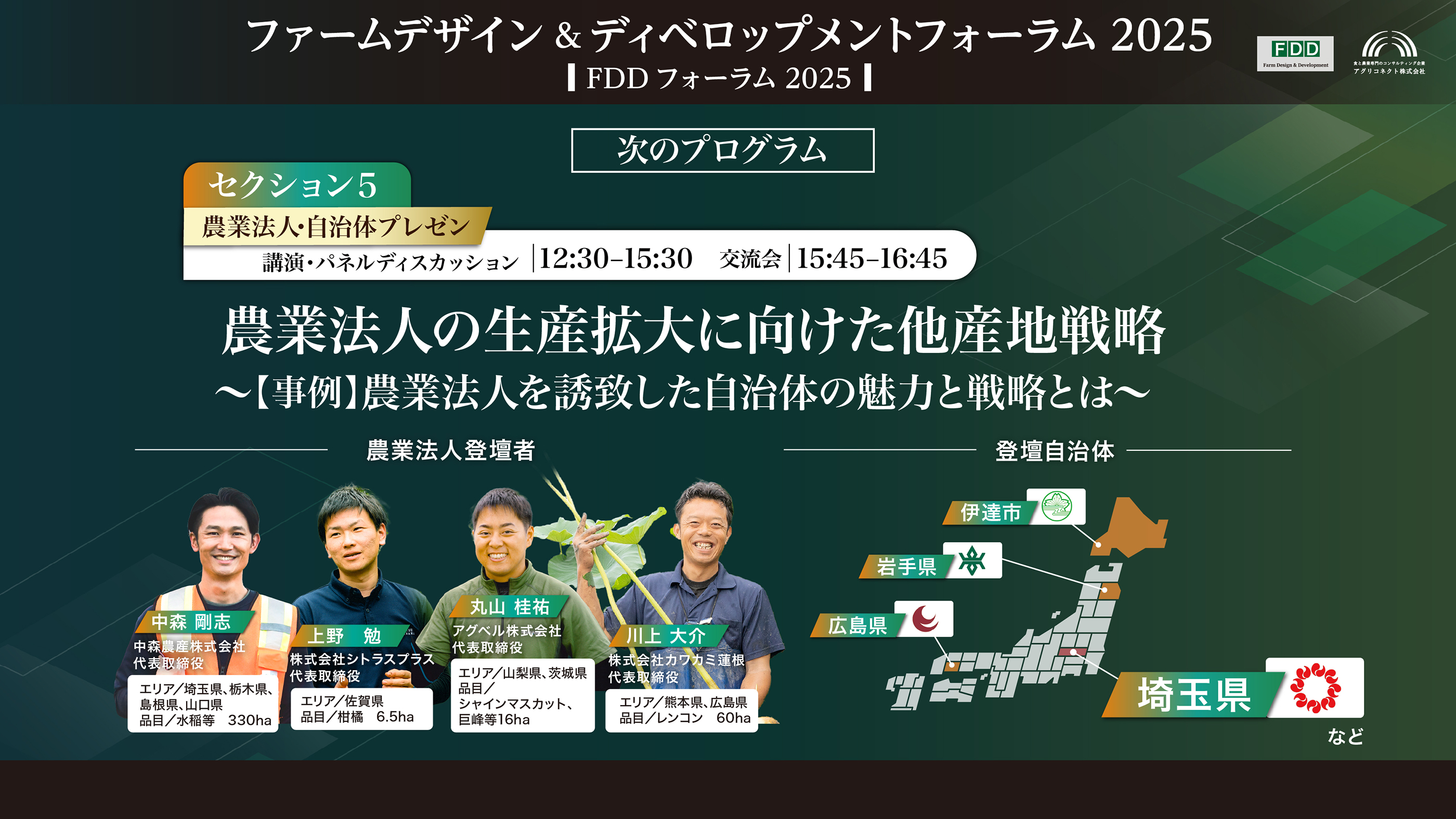 農業WEEK15周年を記念して開催された特別企画「FDDフォーラム2025」に参加し、企業誘致を積極的に推進する自治体として、県の取り組みや支援制度について講演を行いました。