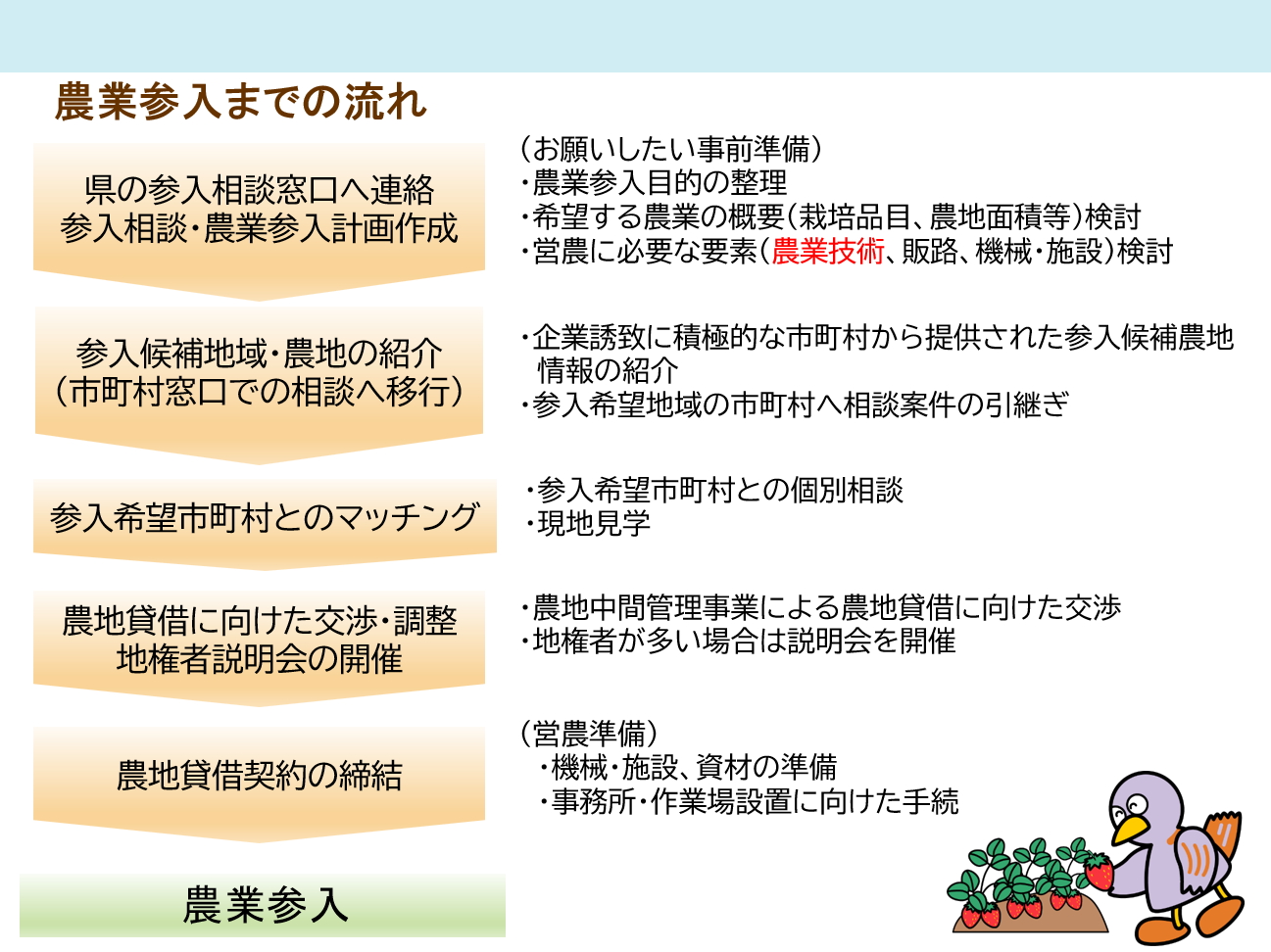 企業・団体による異業種からの農業参入や、農業法人による県外からの参入に関するご相談は「企業等農業参入相談窓口」で受け付けています
